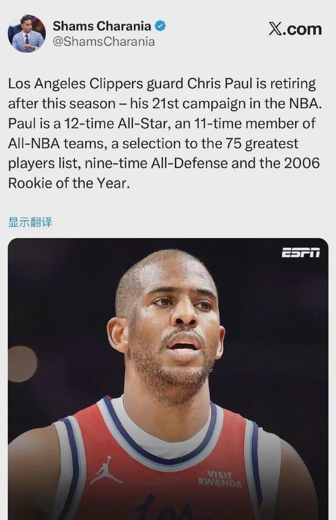 講講保羅,他會在本賽季結束之后退役,自己為期長達21個賽季的NBA生涯即將落下帷幕,其今年已經40歲無法做出實質性貢獻,曾連續5場比賽被泰倫盧DNP。