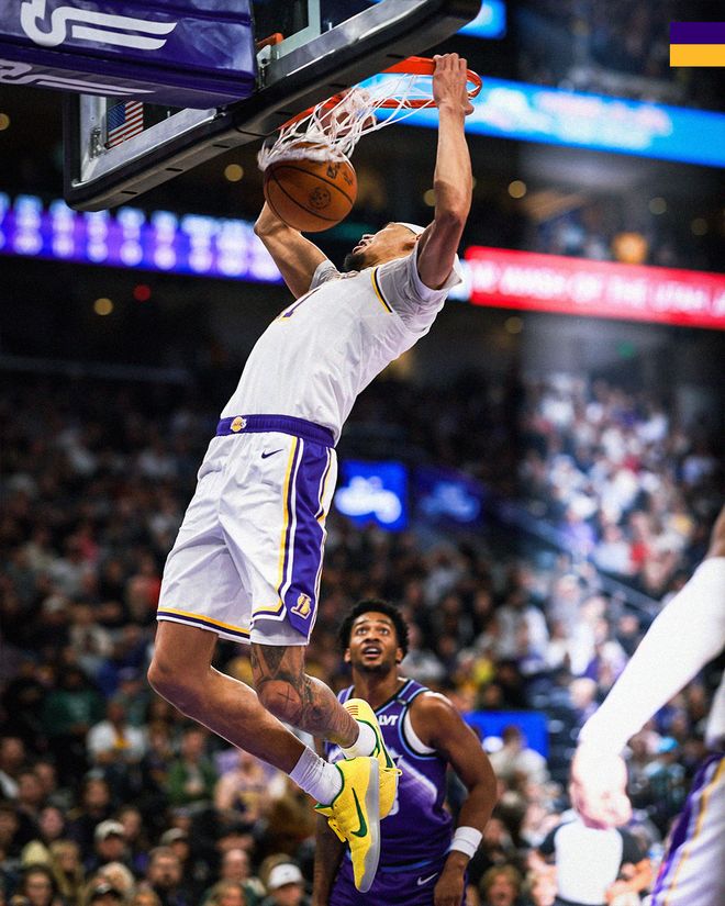 湖人隊的東契奇上半場得到15分和5次助攻,里夫斯12分,勒布朗得到10分和6次助攻,八村塁得到10分;爵士隊的喬治得到11分。