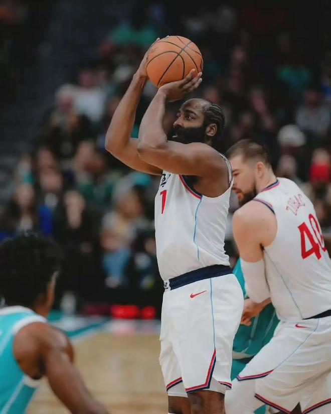 哈登,首節27分全場55+7+10記三分,創快船隊史單場得分紀錄。