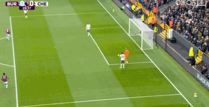 第37分鐘,吉滕斯妙傳,內(nèi)托后點(diǎn)俯身頭槌破門(mén),切爾西1-0!