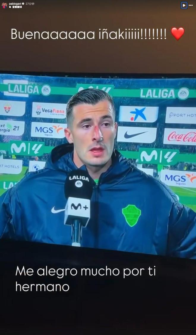 賽后,加維更新社交媒體,曬出了佩尼亞接受采訪的畫面,并寫道:“太棒了,伊尼亞基!!!!!!!??
