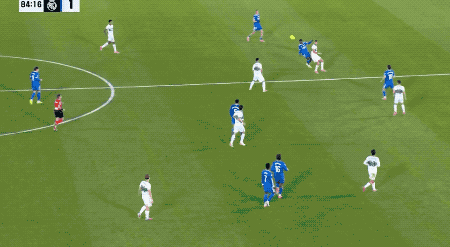 第87分鐘,皇馬又一次頑強扳平比分,同樣是定位球,姆巴佩在皮球即將出界時送上助攻,貝林厄姆破門得分。