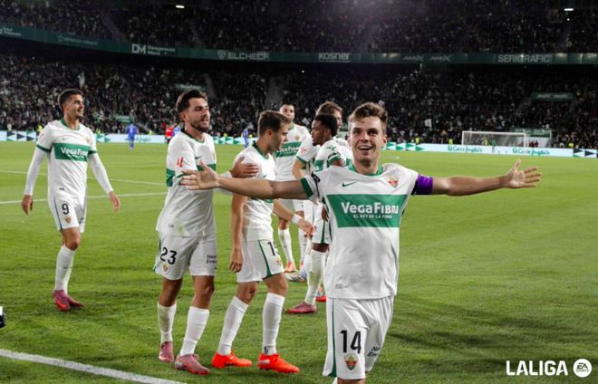 第53分鐘,場上的僵局被打破。埃爾切發(fā)動快速反擊,赫爾曼精妙腳后跟助攻,皇馬青訓出品的費瓦斯搶先出腳,皮球擊中立柱,歡歡滾進球網(wǎng),埃爾切取得領先。