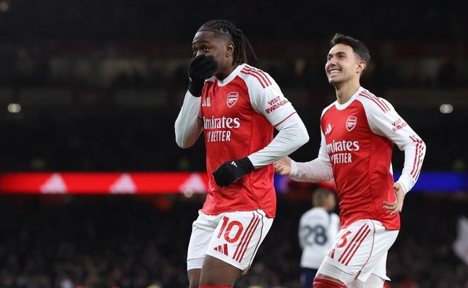 利物浦7輪輸了6場,曼城也在本輪英超輸球,這讓阿森納看到了拉開的分差的機會,縱使這一輪將是同城死敵熱刺,槍手仍然贏得相當輕松。上半場第36分鐘,梅里諾中路妙傳,特羅薩德瀟灑轉身射門得手打破僵局;而接下來便是夏窗新援埃澤發揮的時間了。他先是在第41分鐘接到賴斯的擺渡后,晃開角度打進自己本場第一球;下半場回來不到1分鐘時間,又接到廷貝爾的傳球完成了梅開二度。