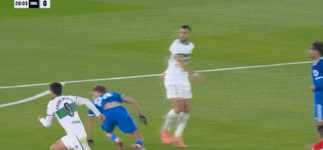 第73分鐘,維尼修斯無私傳球,不過被主隊后衛破壞