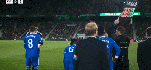 第58分鐘,皇馬換人,維尼修斯、巴爾韋德等人替補登場