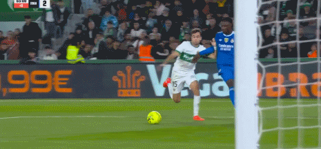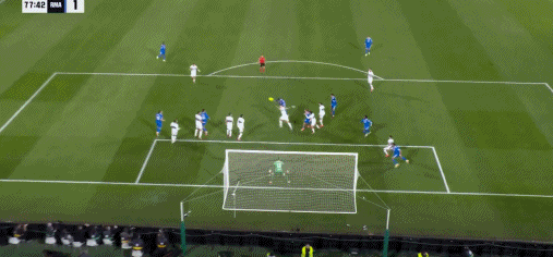第90+4分鐘,卡馬文加傳到門前,貢薩洛鏟射沒有踢到