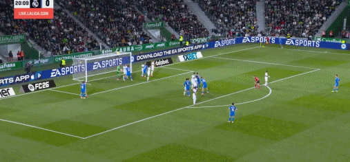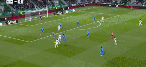 第53分鐘,巴萊拉腳后跟助攻,費瓦斯破門,皇馬0-1