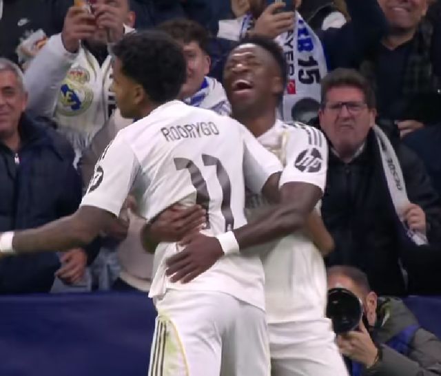 話說回來,羅德里戈也確實爭氣。在這場焦點大戰中,上半場第28分鐘,皇馬率先破門,而進球的人正是羅德里戈。當時皇馬反擊,貝林厄姆斜塞找到右路的羅德里戈,后者帶球殺進禁區,最終小角度推射遠角破門。
